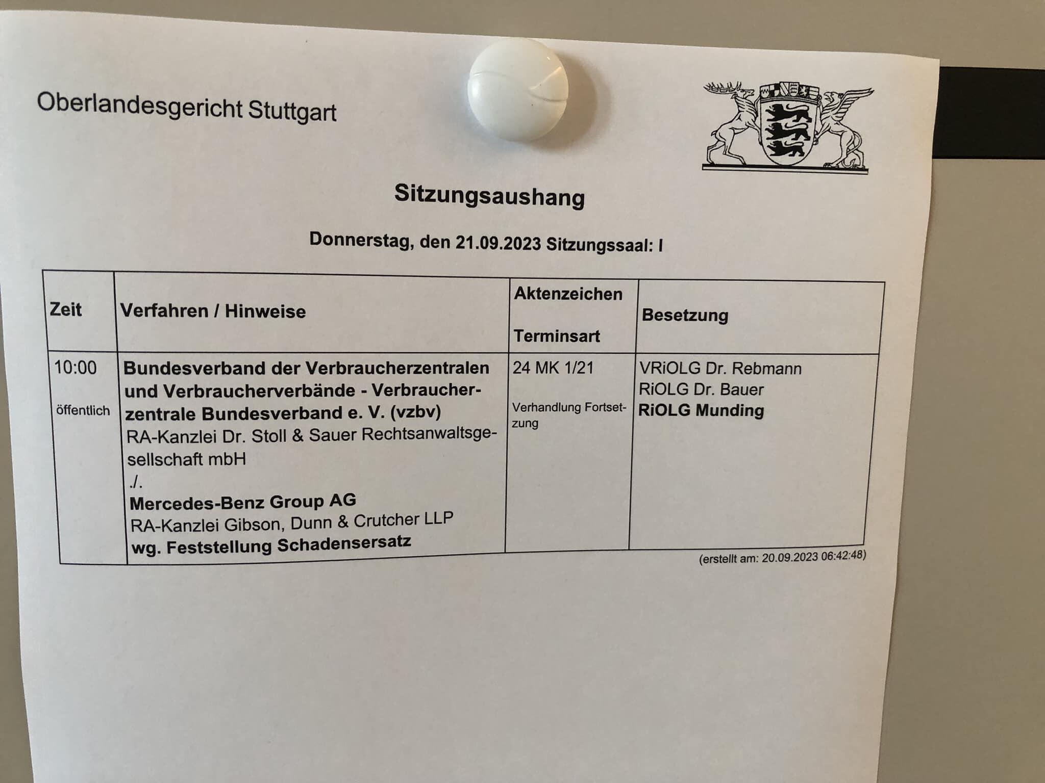 - Gerade am zweiten Verhandlungstermin hatte der 24. Senat am OLG Stuttgart klar gemacht, dass er die neue Rechtsprechung umsetzen werde. „Wir wollen den BGH nicht in Frage stellen.“ Mit diesem Satz gab der Vorsitzende Richter am Oberlandesgericht Stuttgart, Thilo Rebmann, die neue Richtung im Verfahren zur Musterfeststellungsklage gegen die Mercedes-Benz-Group AG vor. Für Verbraucher war das im Grunde eine gute Nachricht, für Mercedes könnte es jetzt teuer werden.